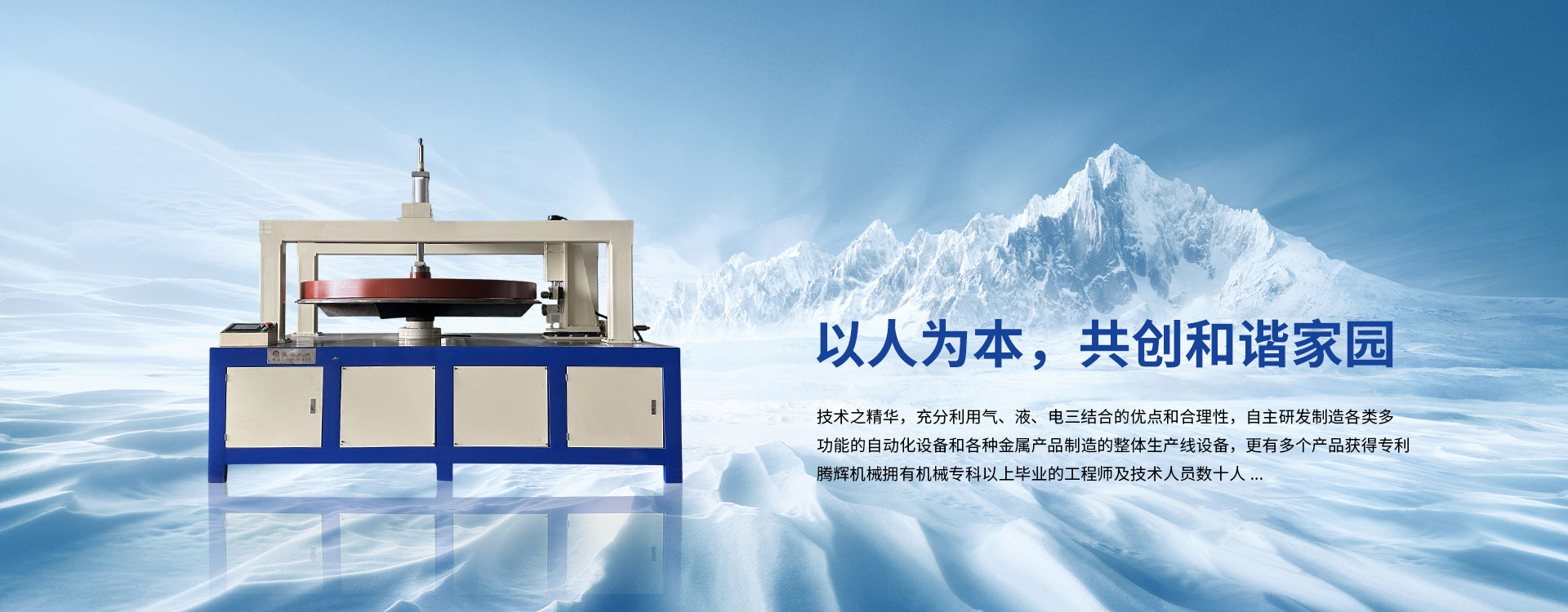 技術(shù)之精華,充分利用氣、液、電三結(jié)合的優(yōu)點(diǎn)和合理性,自主研發(fā)制造各類多功能的自動化設(shè)備和各種金屬產(chǎn)品制造的整體生產(chǎn)線設(shè)備,更有多個產(chǎn)品獲得專利。騰輝機(jī)械擁有機(jī)械專科以上畢業(yè)的工程師及技術(shù)人員數(shù)十人,各種職能部門配置齊全,擁有專業(yè)的設(shè)計(jì),精湛的制造技術(shù),具備一流的設(shè)備配套,還有完善的工藝流程...